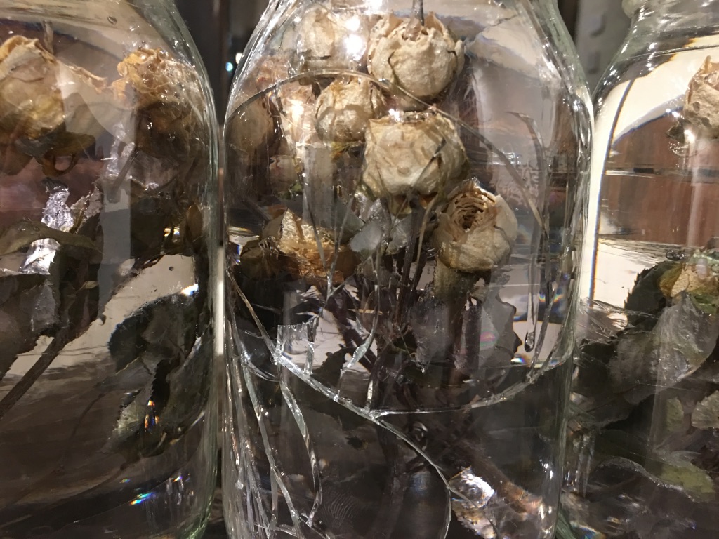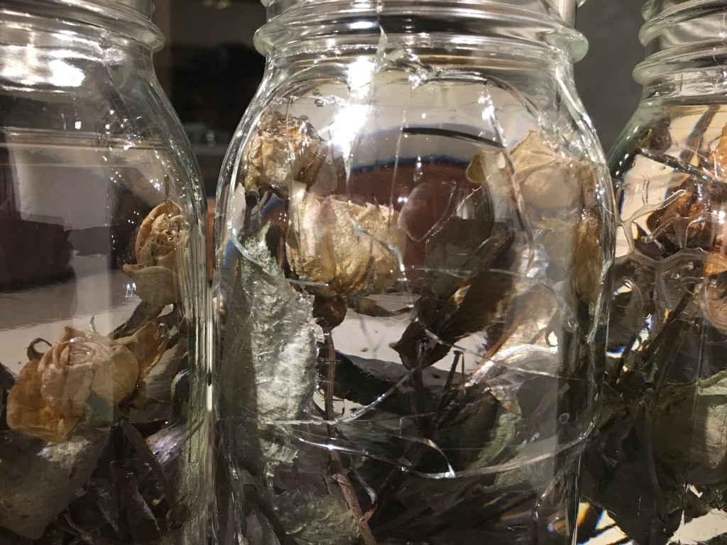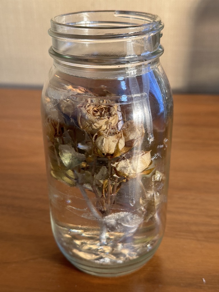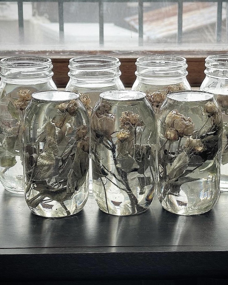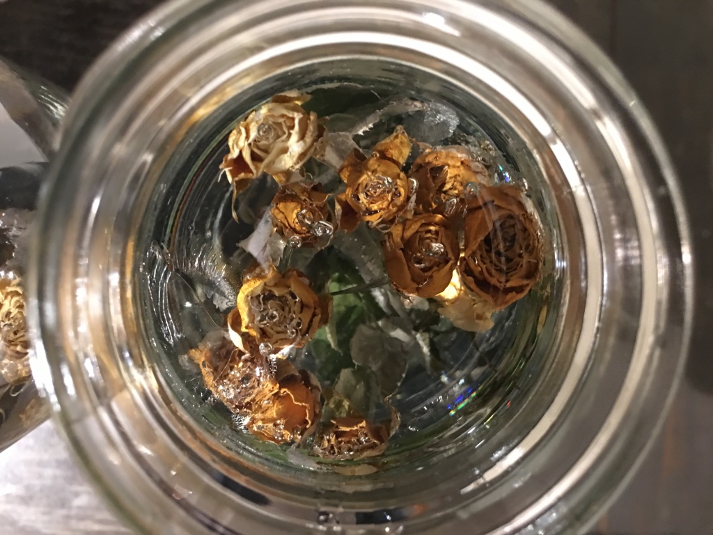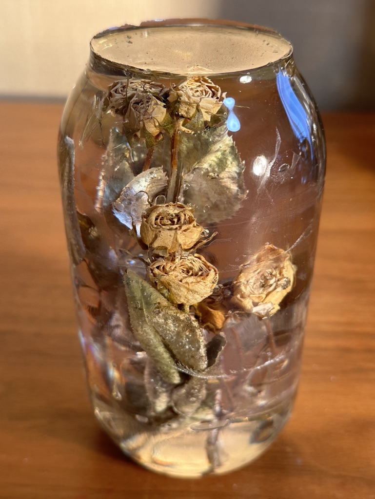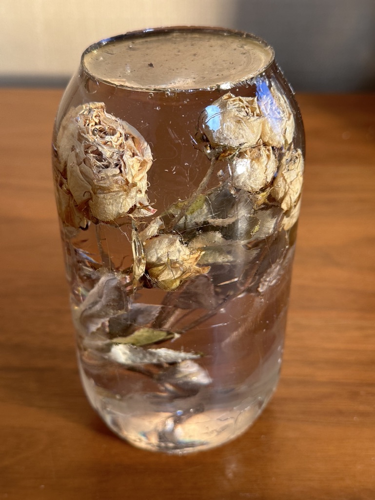 media: glass, dried yellow roses, resin