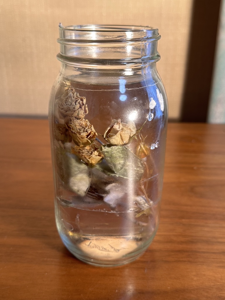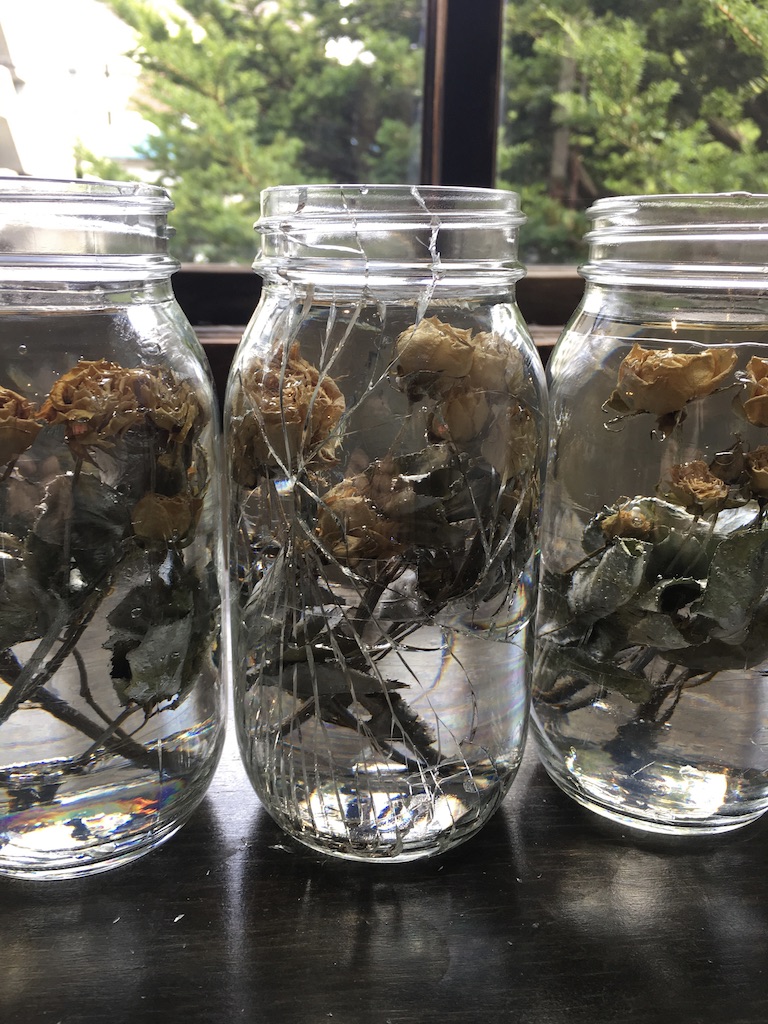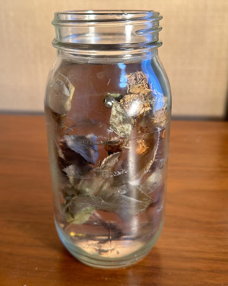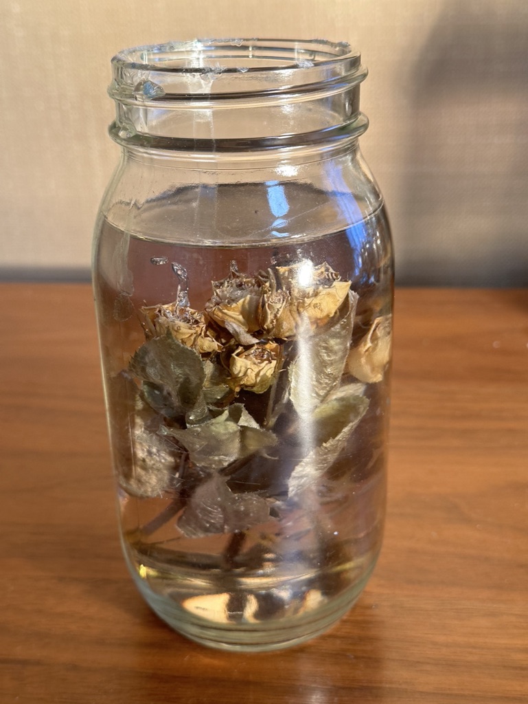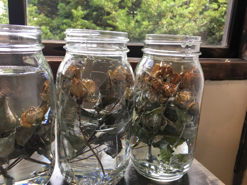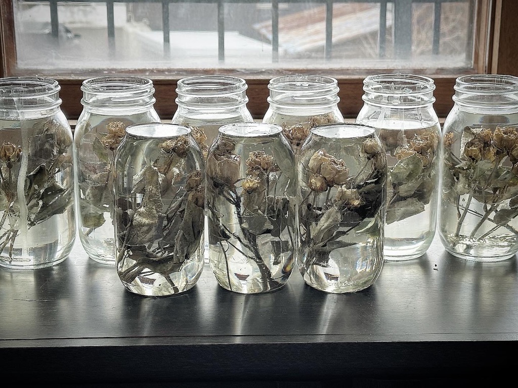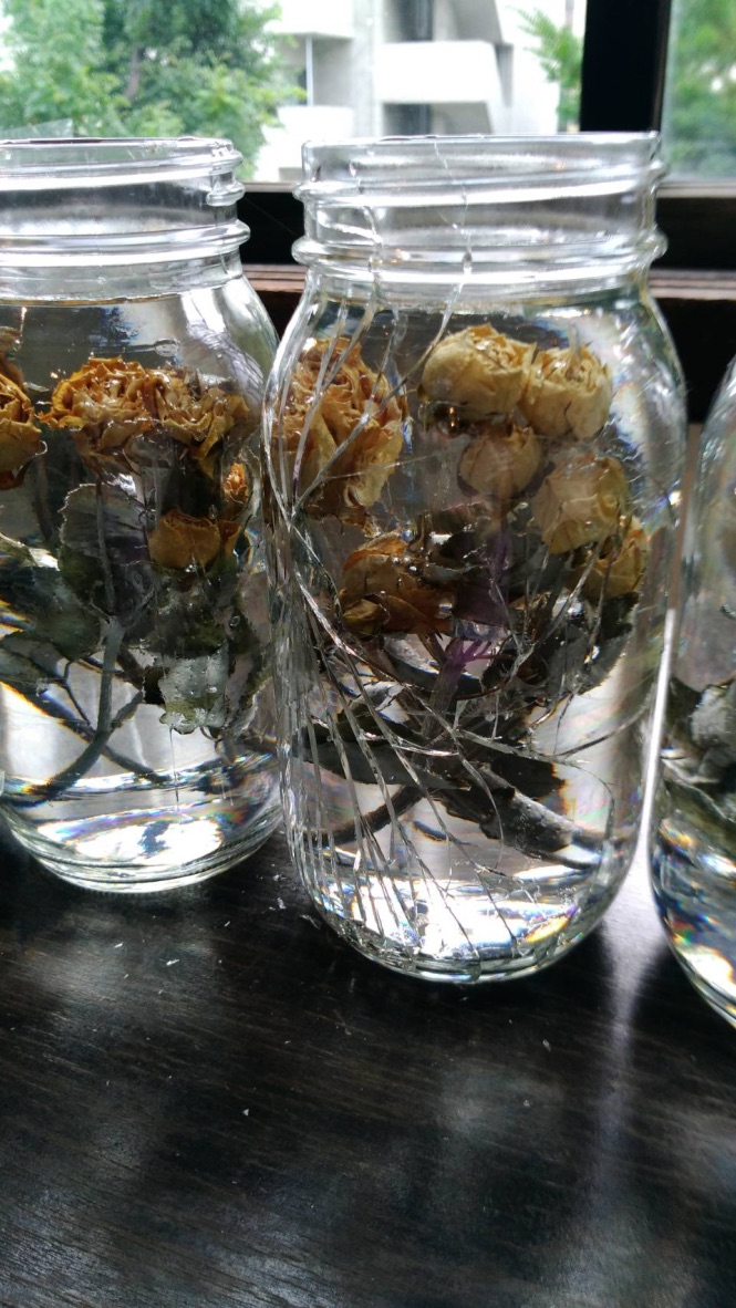 media: glass, dried yellow roses, resin