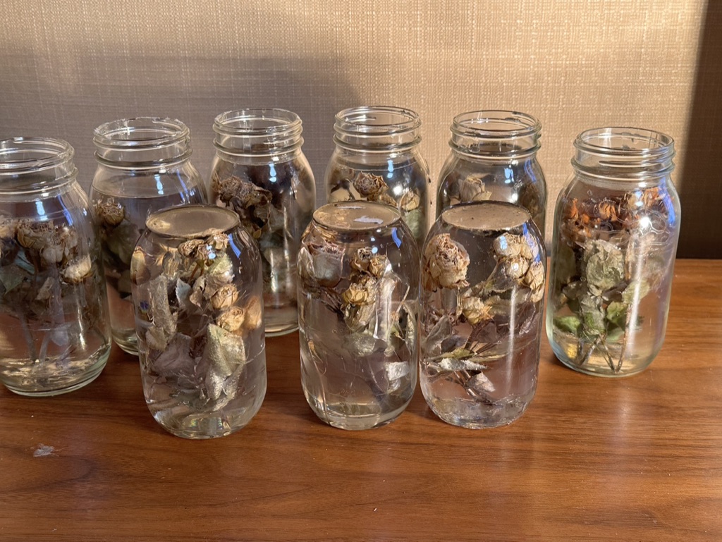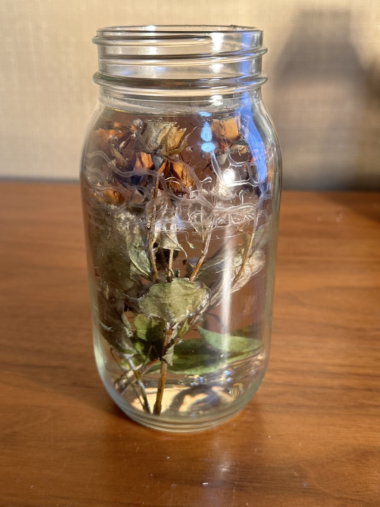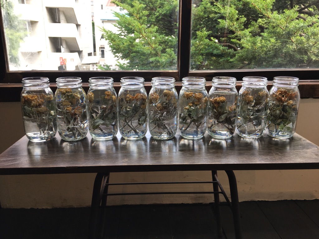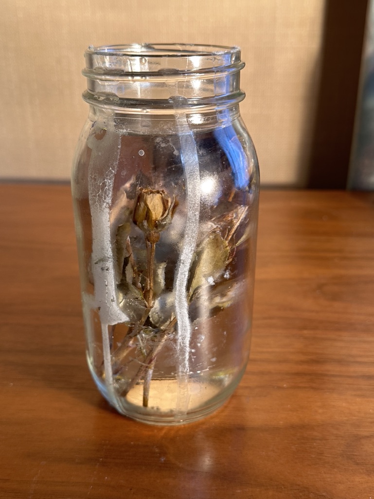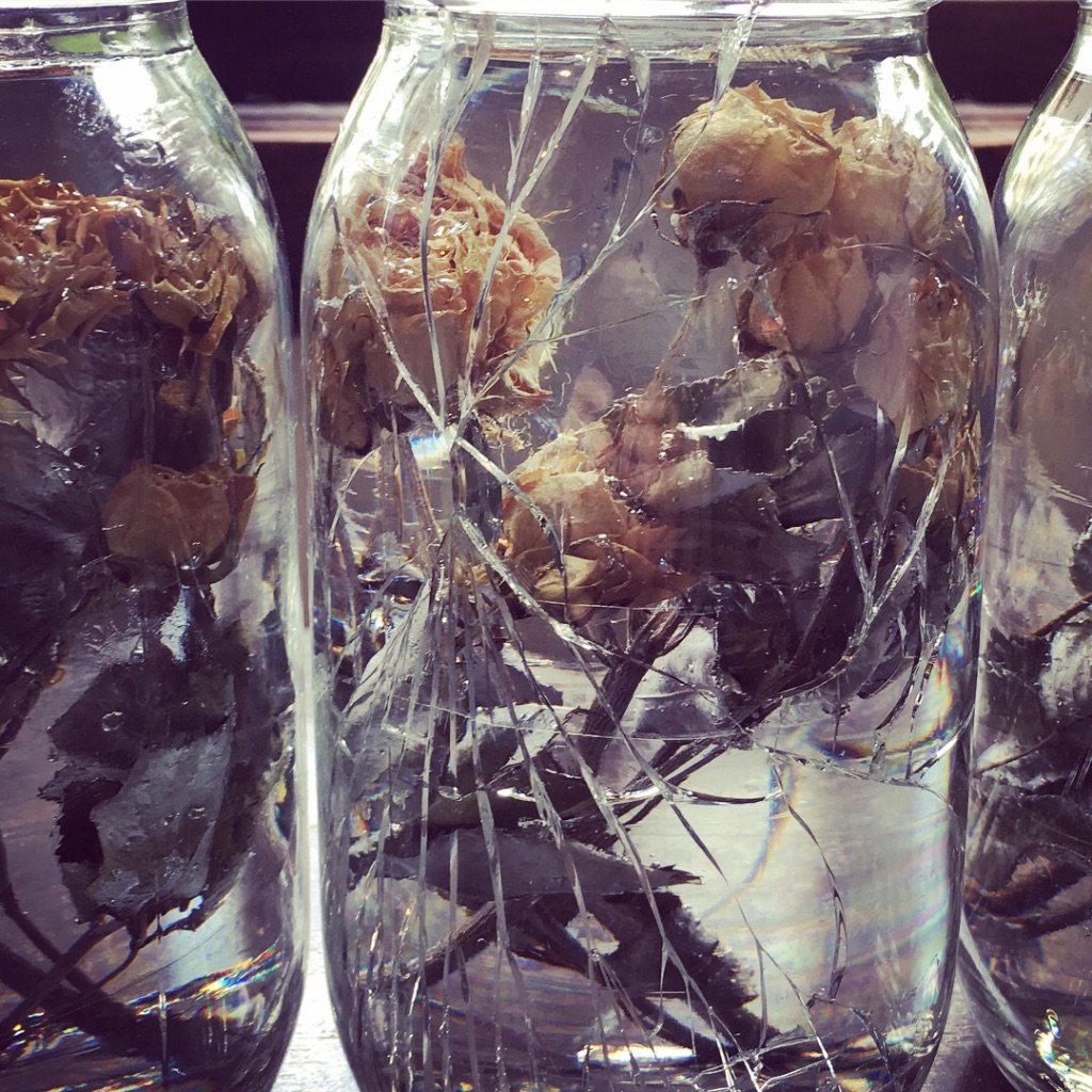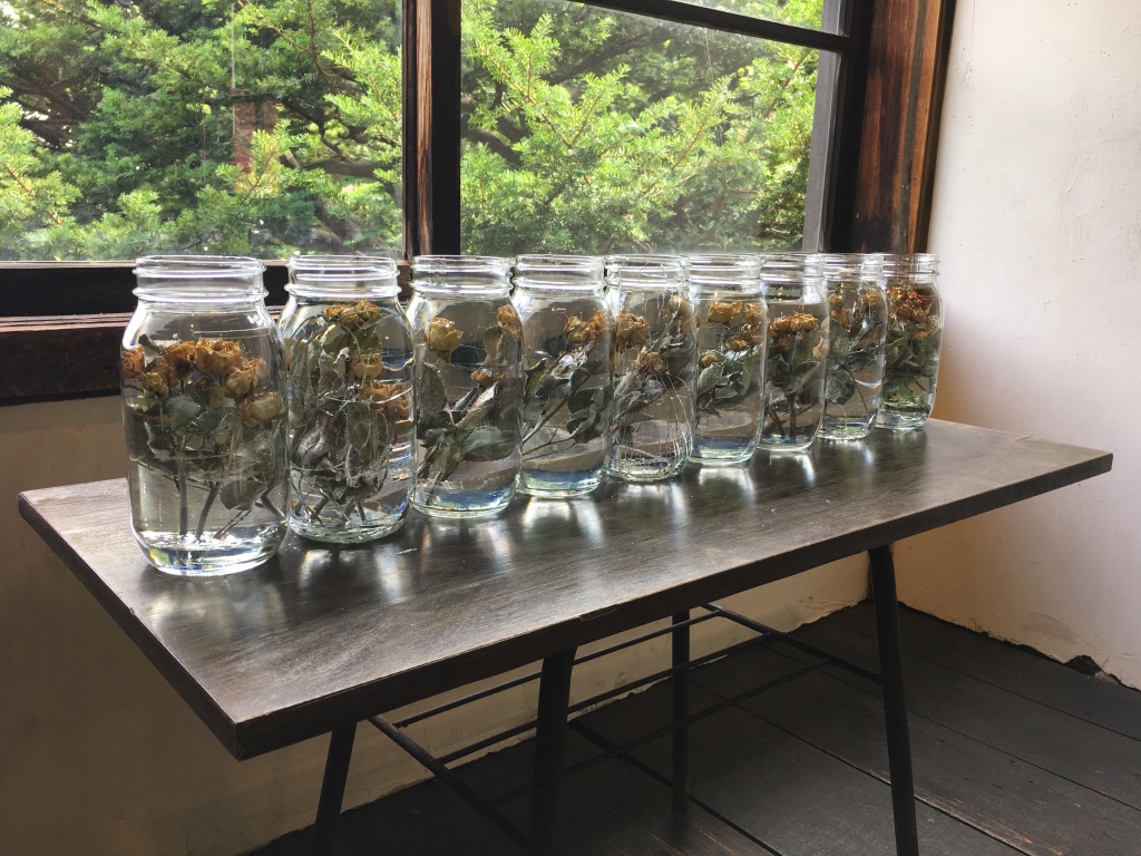 media: glass, dried yellow roses, resin
