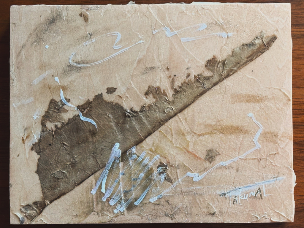 メディア:古くなったクラフト紙、メディウム、油彩、木製パネル