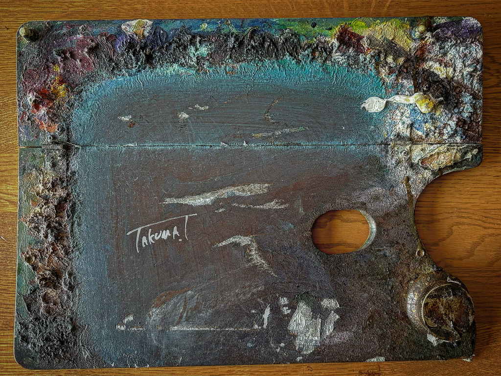 メディア:アーティスト使用の古い油彩パレット、サイン